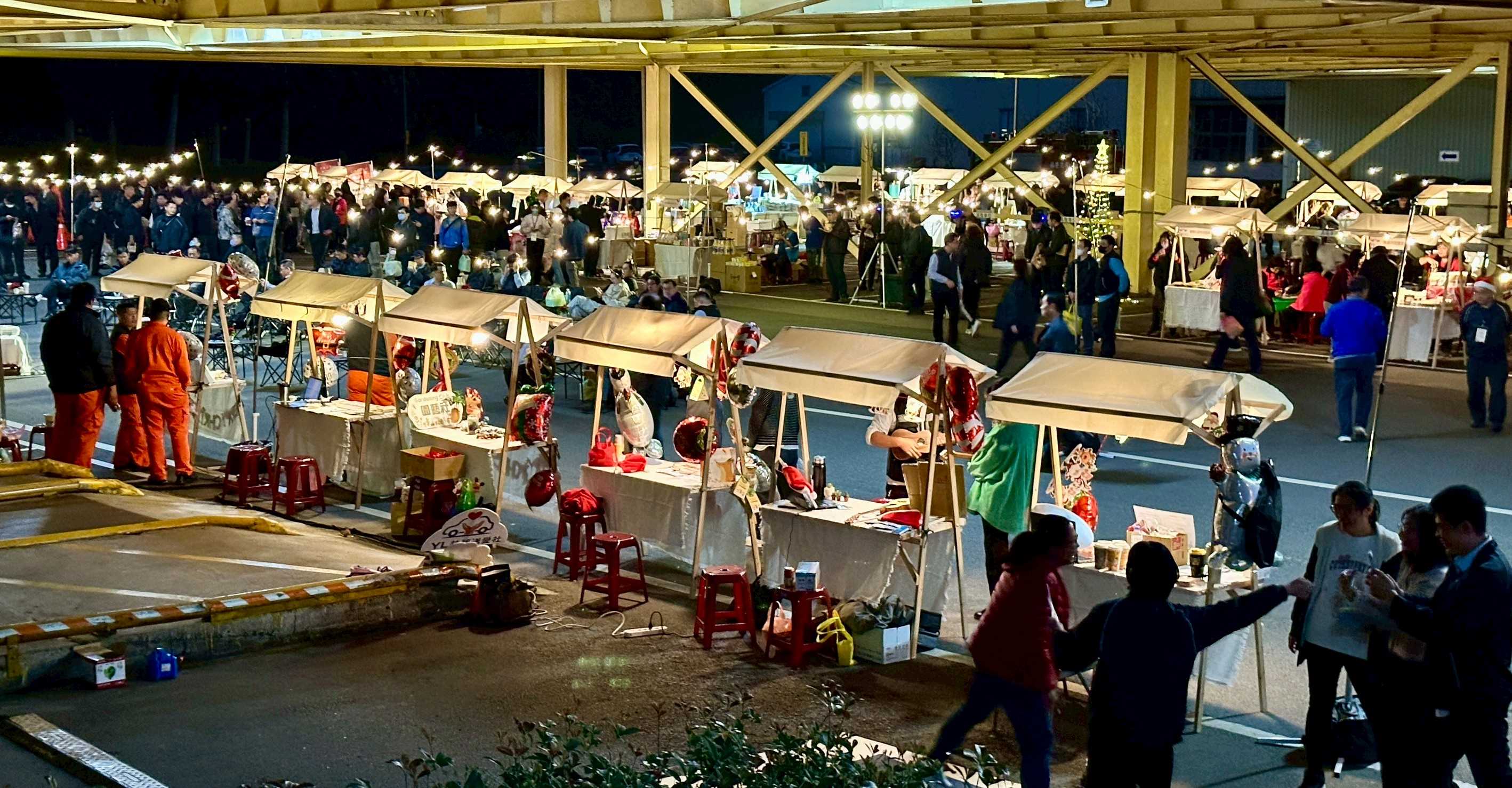 市集現場在燈光與聖誕元素的妝點下,營造出輕鬆溫馨的節慶氛圍,不僅讓同仁得以放慢日常工作節奏、彼此交流心情,也促進公司與苗栗、台中在地小農及社區的連結。活動期間,同仁以實際行動支持社區媽媽手作點心與在地攤商,短短兩小時內多項商品即銷售一空,具體展現企業攜手社區、共創共好的核心理念。