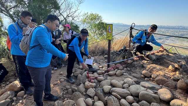 本次活動特別邀請臺灣大學地理環境資源學系鄭遠昌博士親自帶領,同時亦與在地團隊火炎山登山協會一同從火炎山步道入口起行,透過沿線的地質觀察、監測示範與專業講授,讓參與者親身理解地質監測人員的工作流程、培訓新的監測志工與學習更嚴謹的監測手法;並進一步認識火炎山特殊的自然地景與礫石地質特性。
